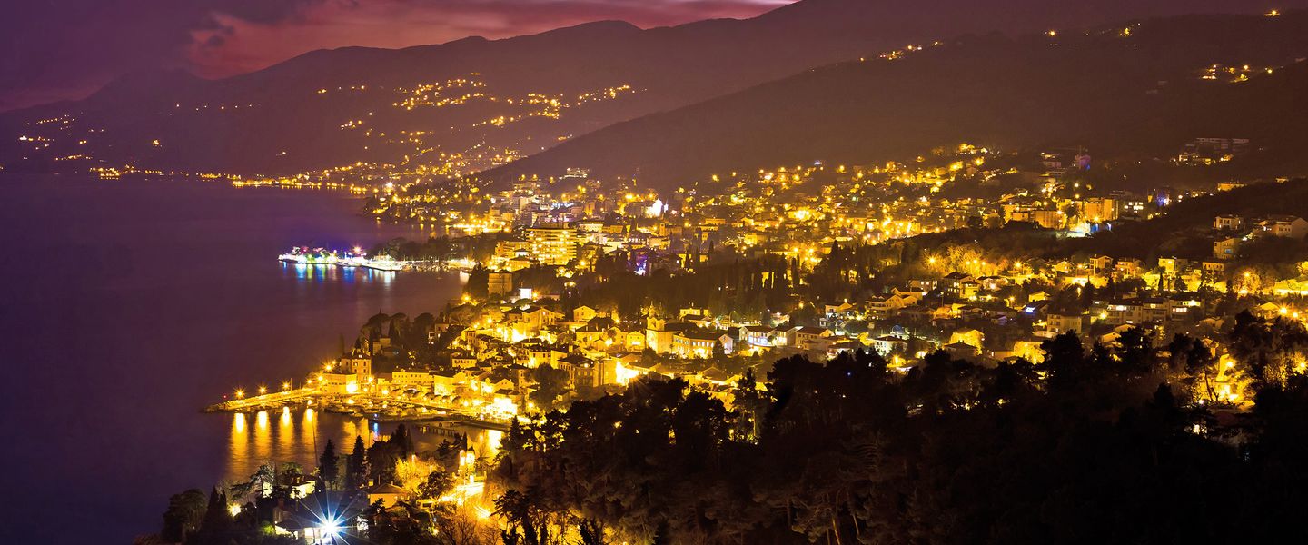 Opatija liegt an der Kvarner Bucht in Kroatien, etwa 13 Kilometer von der Stadt Rijeka entfernt und etwa 90 Kilometer von der Hauptstadt Zagreb. Geografisch ist die Stadt von den malerischen Hügeln des U?ka-Gebirges umgeben und bietet einen spektakulären Blick auf das Adriatische Meer. Opatija ist gut erreichbar über das kroatische Straßennetz, und es gibt regelmäßige Busverbindungen von Rijeka und anderen nahegelegenen Städten. Die zentrale Lage an der Küste macht Opatija zu einem idealen Ausgangspunkt für Erkundungstouren in die umliegenden Regionen, einschließlich der Inseln Krk und Cres. Die Kombination aus natürlicher Schönheit, kulturellem Erbe und der Möglichkeit, die mediterrane Lebensart hautnah zu erleben, macht Opatija zu einem attraktiven Ziel für Reisende, die die Vielfalt und den Charme dieser einzigartigen Stadt entdecken möchten.